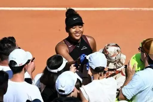 Naomi Osaka celebrates celebrates after beating Daria Kasatkina at the Rome Open